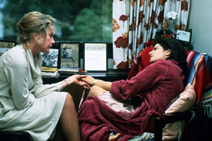 Terms of Endearment is presented as a collage of slice-of-life scenes. Many of these, taken individually, are effective in delineating the Aurora/Emma relationship (or, to a lesser extent, Aurora/Garrett and/or Emma/Flap) and present the actors with opportunities to shine, however briefly. Unfortunately, the connective tissue is thin and the movie's frequent jumps in time not only risk disorienting the viewer but lose important plot points in the process. Characters like Vernon and Patsy are frustratingly half-developed and the shifts in how Emma and Aurora interact often switch, seemingly for little reason, during ellipses between scenes.