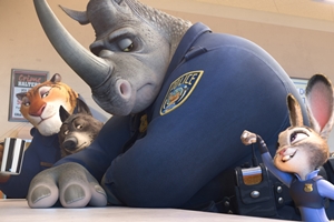 As implied by the title, Zootopia transpires in a fantasy utopia inhabited by anthropomorphic animals (not exactly something new in animation) who have learned to live together in harmony. Predators have suppressed their instincts, enabling them to work and play alongside the creatures they used to rely on for dinner. Zootopia is the largest city in the world, a magical destination for many and, when would-be bunny cop Judy Hopps (voice of Ginnifer Goodwin) travels there to fulfill her dreams, she's met by the reality that the city's "perfection" falls a little short. And, although she's the first rabbit on Zootopia's police force - a victory for Mayor Lionheart's (J.K. Simmons) diversity agenda - Chief Bogo (Idris Elba) isn't convinced of her capabilities and assigns her to meter maid duty. Not content with handing out tickets, Judy begins investigating a series of animal disappearances. This causes her to form an unlikely partnership with a con-artist fox, Nick Wilde (Jason Bateman), and encounter a plethora of oddball characters on her way to solving the case.