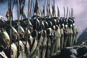 The trilogy's familiar characters have grown subtly deeper in The Return of the King. We've gotten to know these characters so well in their journeys of the previous two films that they've come to life in flesh, bone and a computer-generated part or two far more even than in the fantastical novels. Strapping Mortensen turns Aragorn into a worthy king not just with heroic words (although he does give one heck of a Henry V speech to rally the troops), but also with immense courage in his convictions. Bloom's Legolas, still the coolest elf ever (sorry, Will Ferrell), and Rhys-Davies' Gimli finally put away their cultural differences and become true friends, while the wise McKellen and perky Boyd have some poignant moments together preparing Minas Tirith for the great battle and saving Gondor ranger Faramir (David Wenham) from his insane father Denethor (John Noble). Miranda Otto as Rohan princess Eowyn shows some serious mettle on the battlefield, kicking the bejeezus outta some nasty baddies. Frodo, on the other hand, is so tormented and feeble it's hard to watch at times, but the soulful Wood plays it beautifully. Serkis' computer-generated Gollum remains as creepy and sad as ever, but when he gets the Ring back for one brief, shining moment, the look of pure joy on that horribly distorted face is something to see. But there's no doubt about it; the true hero of this last installment is Astin's Sam. Turns out, the trilogy is as much Sam's journey as Frodo's--if anything, Sam is the one who changes most throughout the ordeal, as his average Joe Hobbit becomes the story's heart and soul.