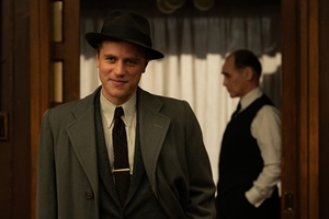 Existing in Rylance's shadow (since, considering the strength of his performance, there's nowhere else to be) are veteran Simon Russell Beale, Dylan O'Brien (who played Thomas in the Maze Runner movies), and Johnny Flynn, all of whom are effective in their respective roles. The cast includes two women: Zoey Deutch, who isn't always convincing as a 1950s-era woman, and Nikki Amuka-Bird, who plays the leader of the LaFontaines, the Boyles' rival in finding favor with the mysterious "Outfit" (which is said to own Chicago and has ties to the late Al Capone).
